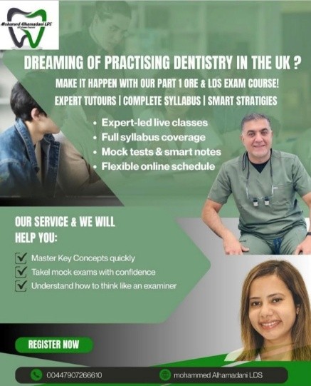 “This collaboration allows me to contribute to a highly structured and reputable learning program designed to support internationally trained dentists in achieving success in their licensing examinations. Under Dr. Al Hamadani’s distinguished guidance, I am actively involved in delivering high-quality educational content, fostering critical understanding, and supporting candidates through a comprehensive and student-focused teaching approach. This role not only strengthens my commitment to academic excellence but also enables me to play a meaningful part in shaping the next generation of dental professionals”
